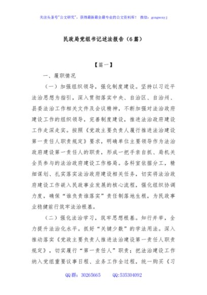/ (6篇)民政局党组书记述法报告
