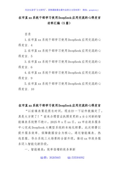/ (5篇)在市直系统干部学习使用DeepSeek应用交流的心得发言材料汇编