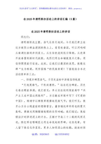 / (5篇)在2025年清明祭扫活动上的讲话汇编