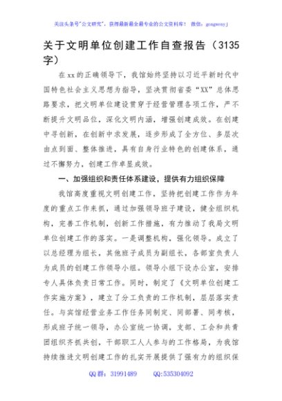 / 关于文明单位创建工作自查报告