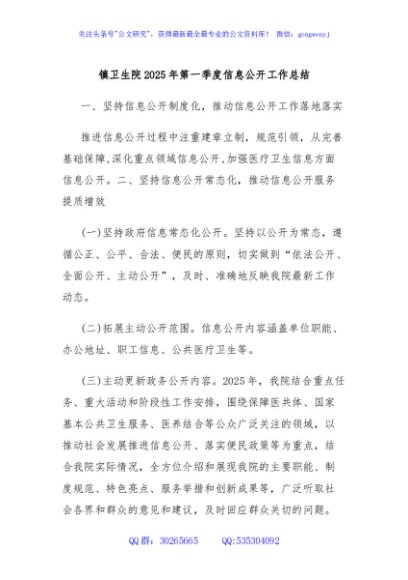 / 镇卫生院2025年第一季度信息公开工作总结