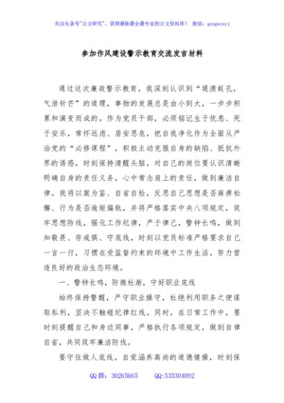 / 参加作风建设警示教育交流发言材料