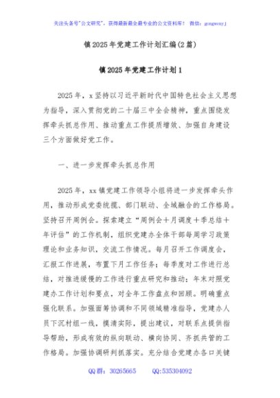 (2篇)镇2025年党建工作计划汇编