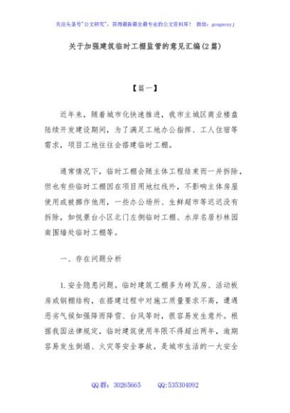 / (2篇)关于加强建筑临时工棚监管的意见汇编