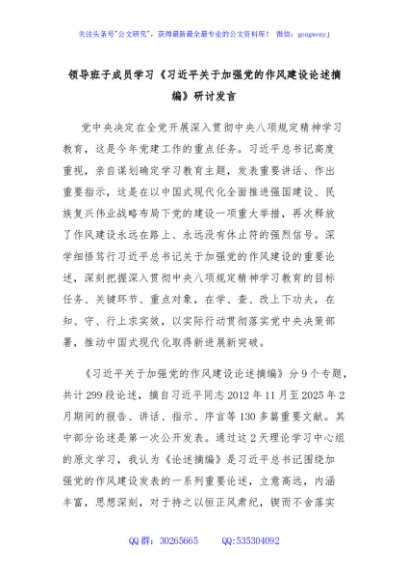 / 领导班子成员学习《习近平关于加强党的作风建设论述摘编》研讨发言