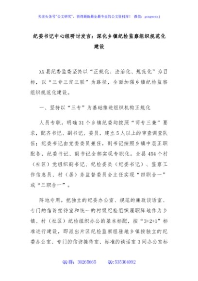 / 纪委书记中心组研讨发言:深化乡镇纪检监察组织规范化建设