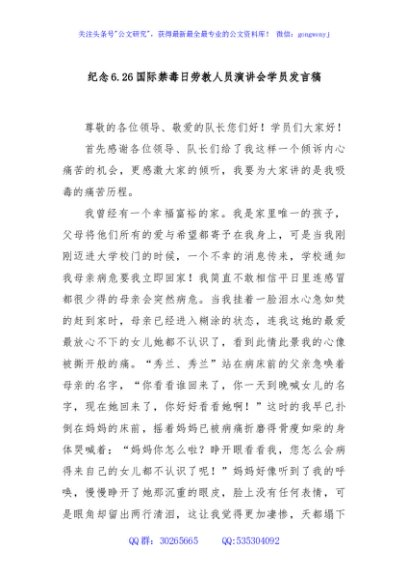 / 纪念6.26国际禁毒日劳教人员演讲会学员发言稿