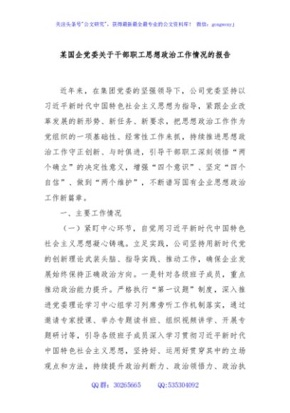 / 某国企党委关于干部职工思想政治工作情况的报告
