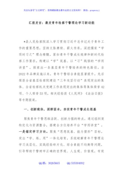 / 汇报发言:激发青年检察干警理论学习新动能