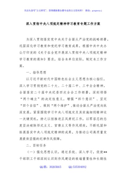 / 深入贯彻中央八项规定精神学习教育专题工作方案