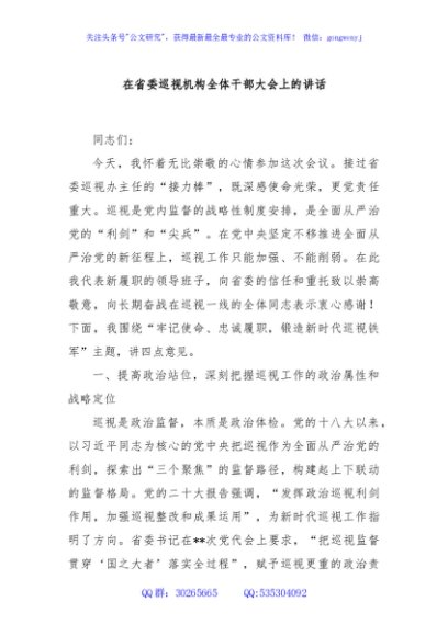 在县委第四巡察组巡察县政府办公室党组情况反馈会议上的讲话