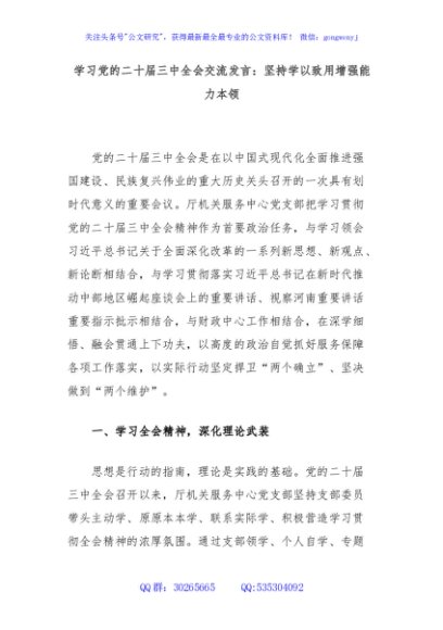 / 学习党的二十届三中全会交流发言:坚持学以致用增强能力本领