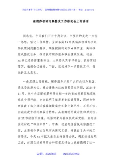 / 在殡葬领域巡察整改工作推进会上的讲话