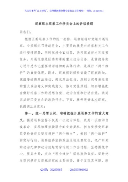 / 巡察组在巡察工作动员会上的讲话提纲