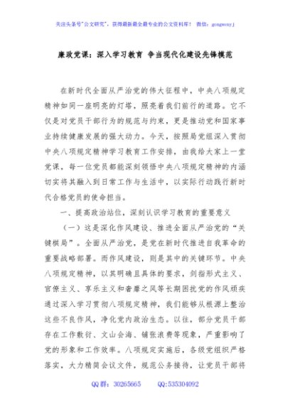 廉政党课:深入学习教育 争当现代化建设先锋模范