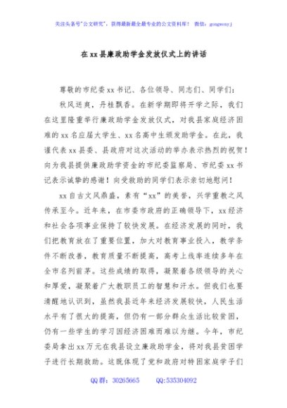 / 在xx县廉政助学金发放仪式上的讲话