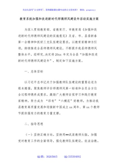 / 教育系统加强和改进新时代师德师风建设年活动实施方案