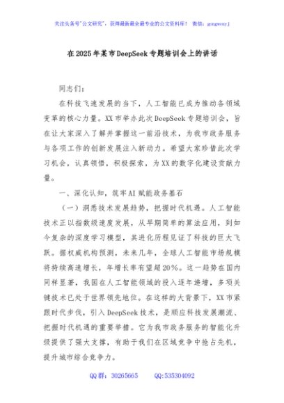 / 在2025年某市DeepSeek专题培训会上的讲话