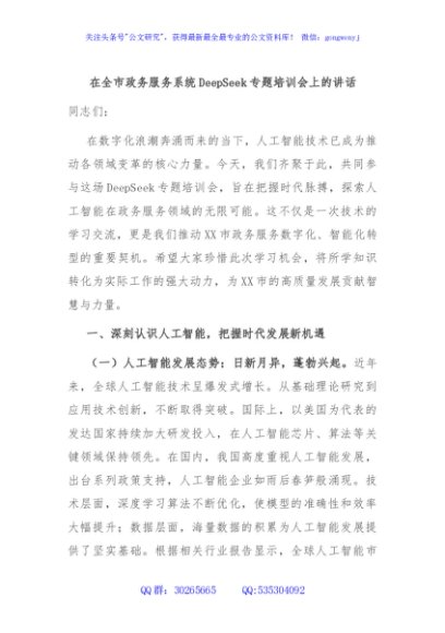 / 在全市政务服务系统DeepSeek专题培训会上的讲话