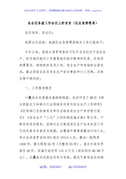 / 在全区务虚工作会议上的发言(区应急管理局)