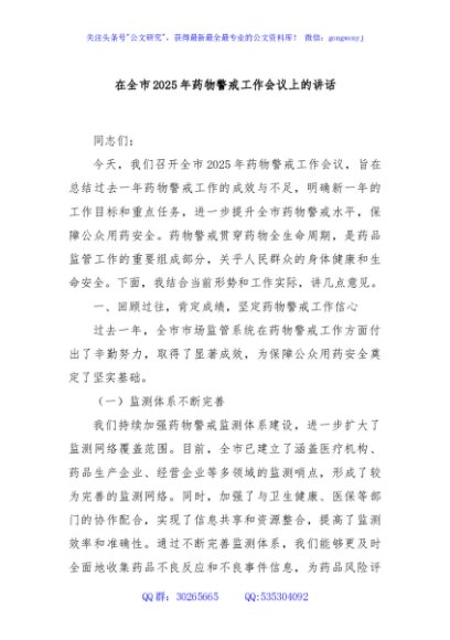 / 在全市2025年药物警戒工作会议上的讲话