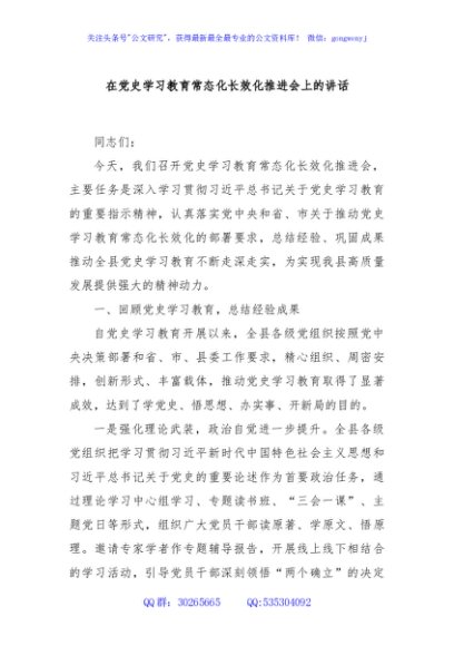 / 在党史学习教育常态化长效化推进会上的讲话
