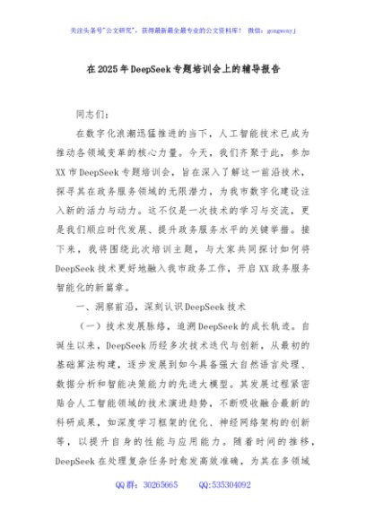 / 在2025年DeepSeek专题培训会上的辅导报告