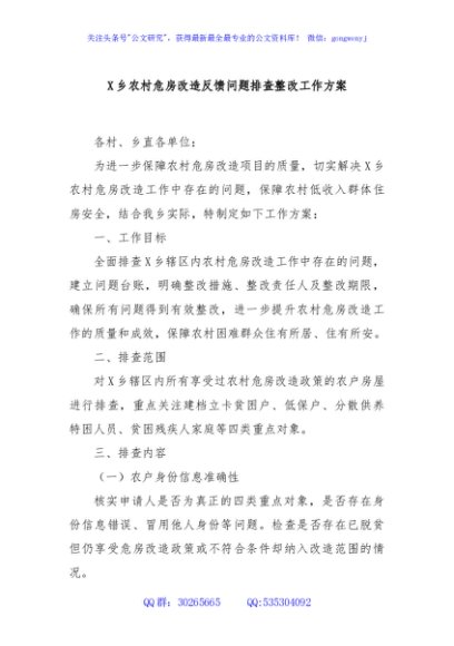 / X乡农村危房改造反馈问题排查整改工作方案