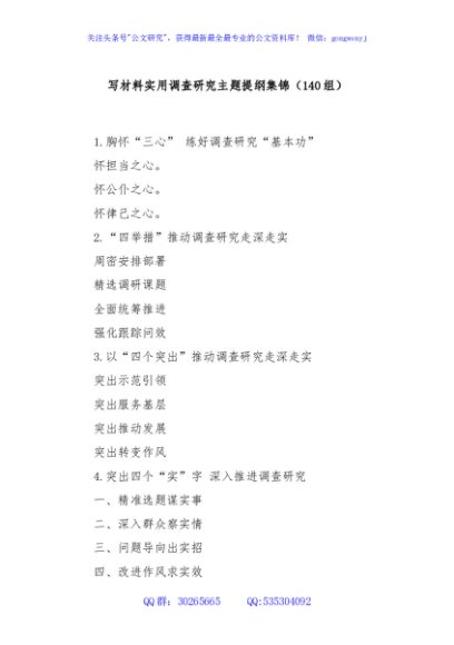 / 写材料实用调查研究主题提纲集锦(140组)