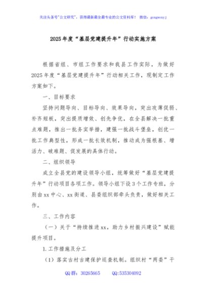 / 2025年度“基层党建提升年”行动实施方案