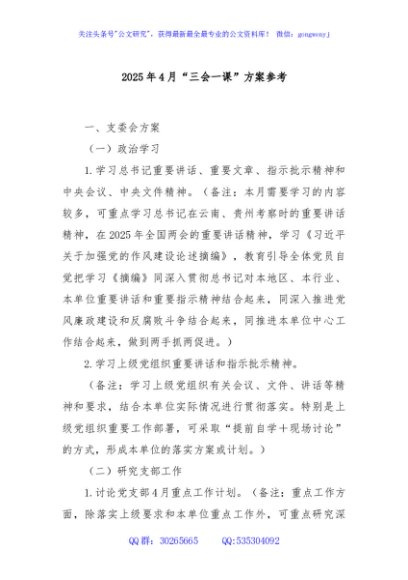 / 2025年4月“三会一课”方案参考