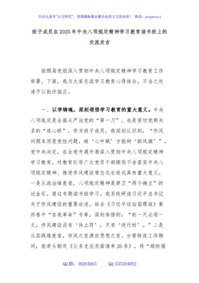 / 班子成员在2025年中央八项规定精神学习教育读书班上的交流发言