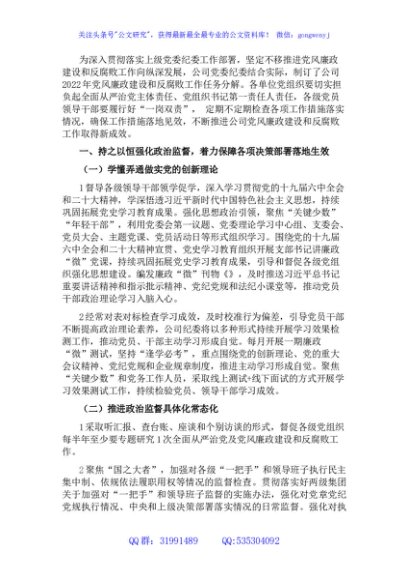 国企2022年党风廉政建设和反腐败工作任务分解