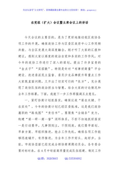 / 在党组(扩大)会议暨主席会议上的讲话