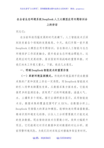 / 在全省生态环境系统DeepSeek人工大模型应用专题培训会上的讲话