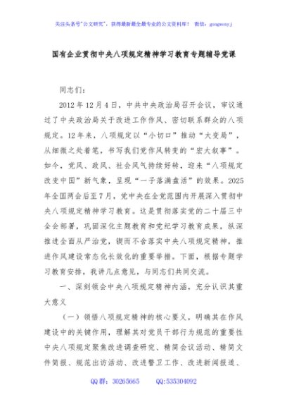 / 国有企业贯彻中央八项规定精神学习教育专题辅导党课