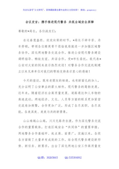 会议发言:携手推进现代警务 共筑全域安全屏障