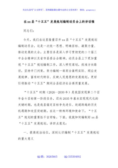 / 在xx县“十五五”发展规划编制动员会上的讲话稿