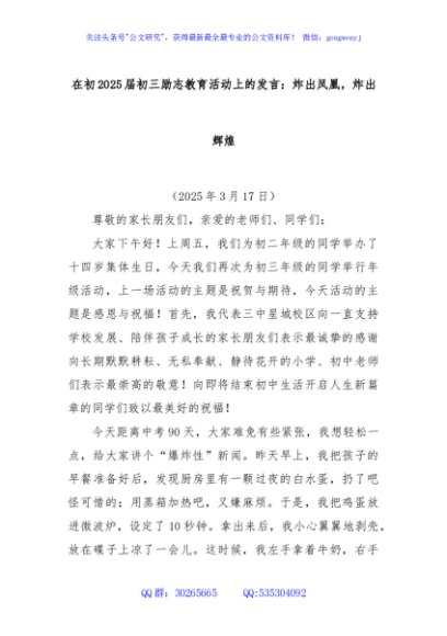 / 在初2025届初三励志教育活动上的发言:炸出凤凰,炸出辉煌