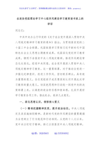 / 在政协党组理论学习中心组作风建设学习教育读书班上的讲话