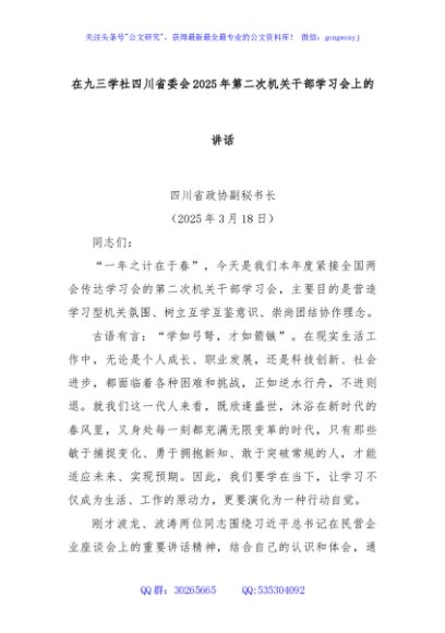 / 在九三学社四川省委会2025年第二次机关干部学习会上的讲话