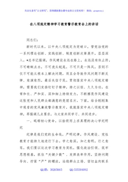 / 在八项规定精神学习教育警示教育会上的讲话