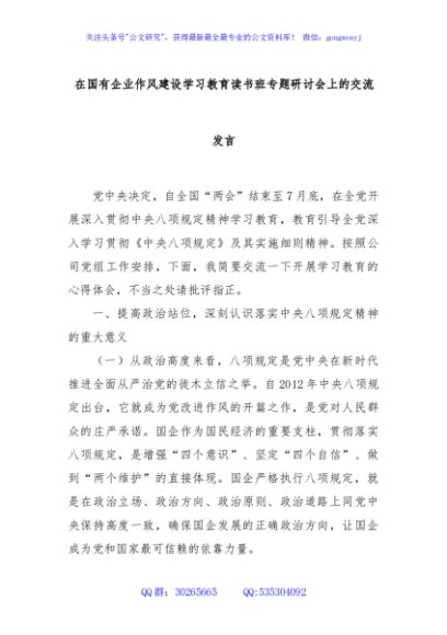 / 在国有企业作风建设学习教育读书班专题研讨会上的交流发言