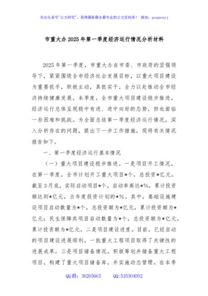 / 市重大办2025年第一季度经济运行情况分析材料