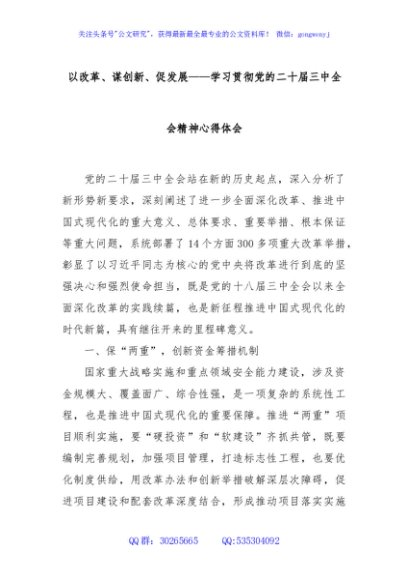 / 以改革、谋创新、促发展——学习贯彻党的二十届三中全会精神心得体会