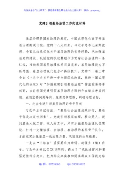 / 党建引领基层治理工作交流材料
