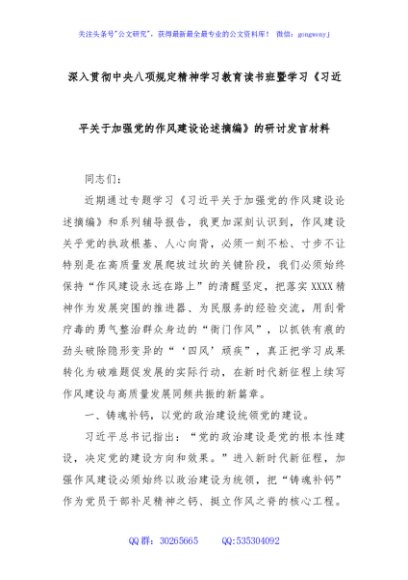 / 深入贯彻中央八项规定精神学习教育读书班暨学习《习总书记关于加强党的作风建设论述摘编》的研讨发言材料