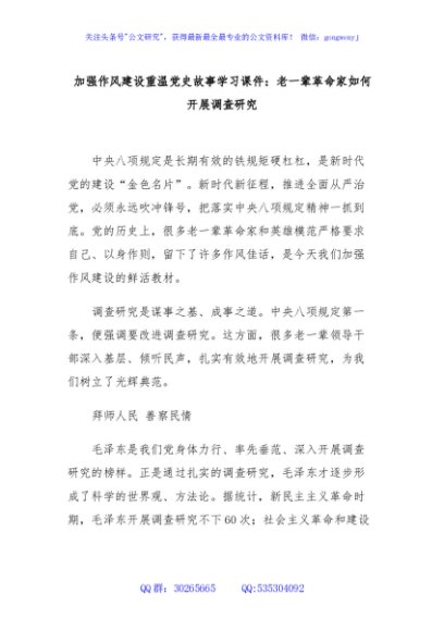 / 加强作风建设重温党史故事学习课件:老一辈革命家如何开展调查研究