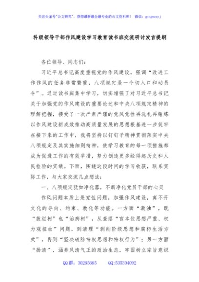 / 科级领导干部作风建设学习教育读书班交流研讨发言提纲