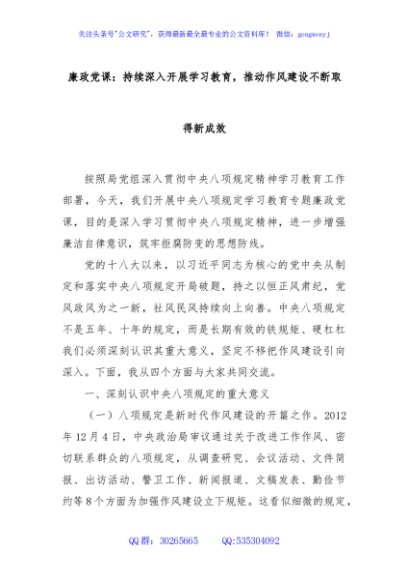 / 廉政党课:持续深入开展学习教育,推动作风建设不断取得新成效